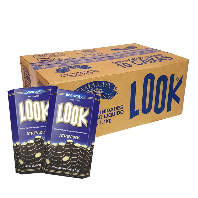 Look, o stick de waffer recheado sabor chocolate branco para você comer na hora que quiser ou usar como acompanhamento de sorvetes e sobremesas. Contém 20 caixinhas de 55g cada. Cada caixinha contém em média 11 unidades/canudos.
