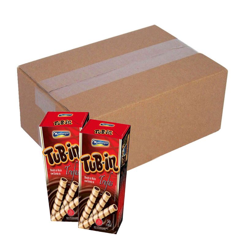 Tubinho de Wafer Tub In Recheio Trufas 48g com 24. Marca: Montevérgine
