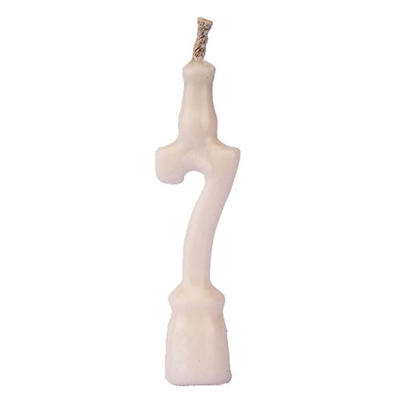 Vela de cera de aniversario com o Número 7 na cor branca.